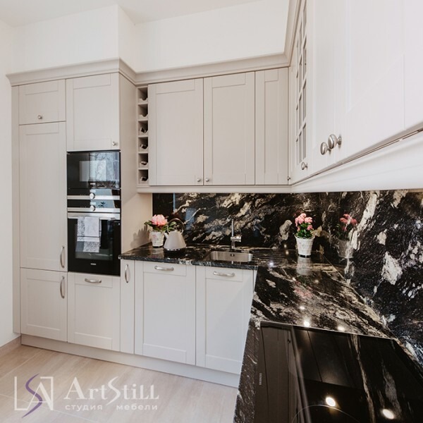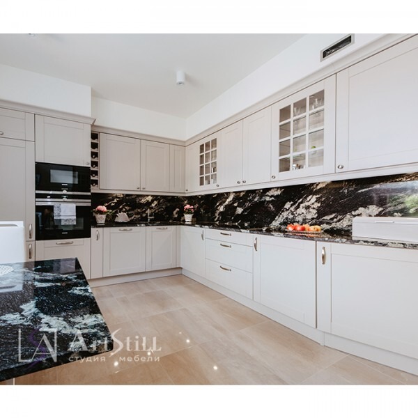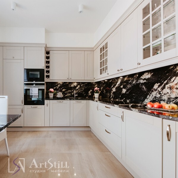 Угловая кухня, выполненная в стиле неоклассика. Это дизайнерское решение, сочетающее в себе элементы классического и современного стилей, которое придаст вашей кухне особую элегантность.