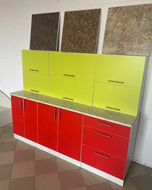 код 132722Современная линейная кухня. Разные цветовые решения фасадов и столешницы.