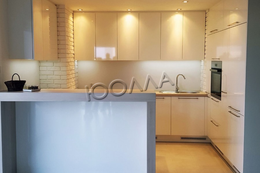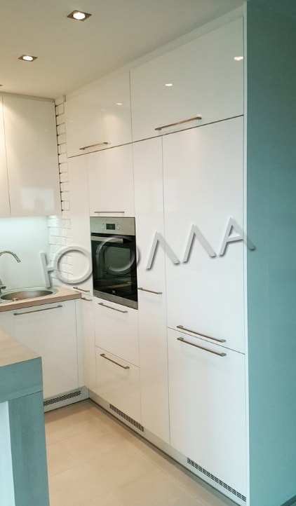 Кухня изготовлена со скрытыми креплениями и фурнитурой по немецкой технологии "Фолдинг".