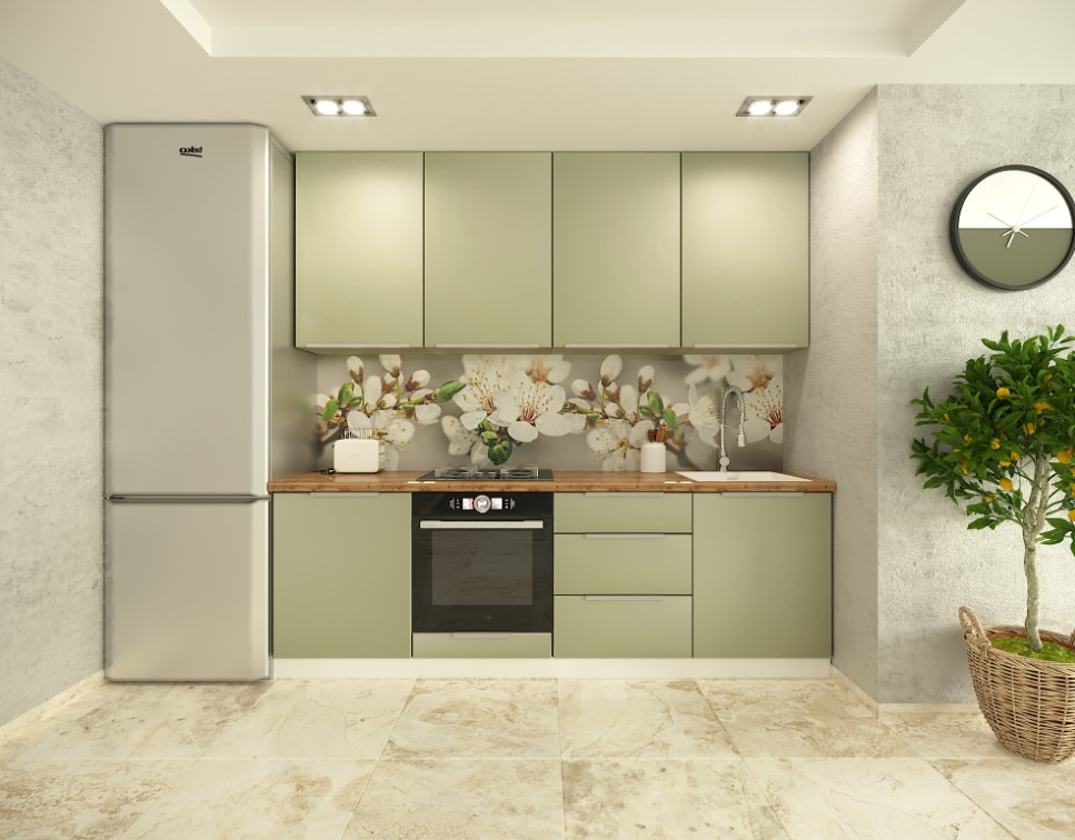 Прямая кухня «Эльза» МДФ 2.0 м, олива грин