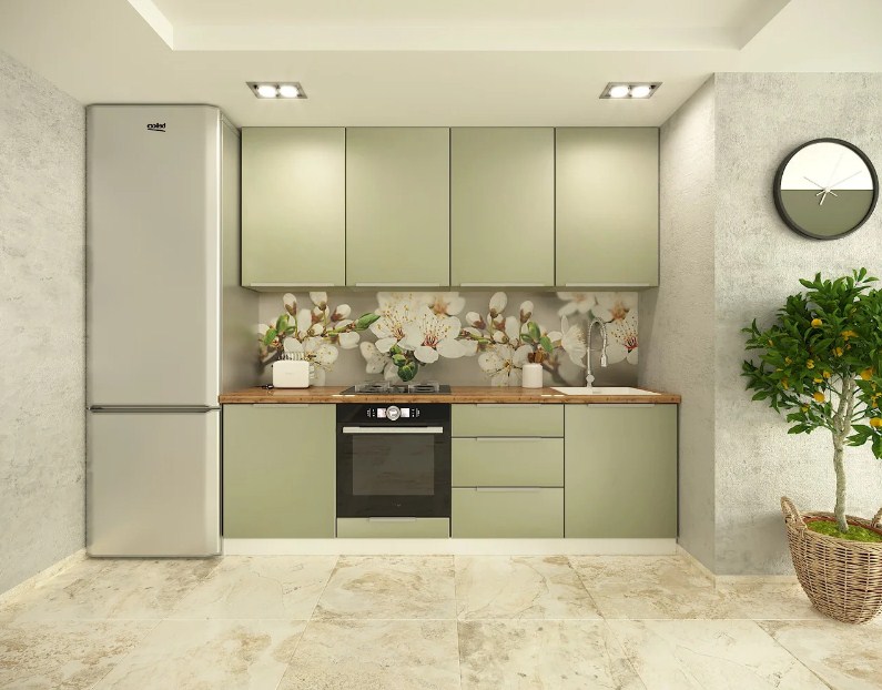 Кухня прямая «Агата» 2.4 м Дуб молочный - Зеленая мамба