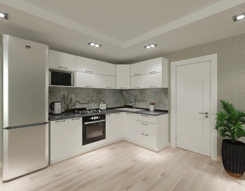 Вы можете включить в проект дополнительные опции: подсветка, мойка, смеситель, скинали, кухонную технику.