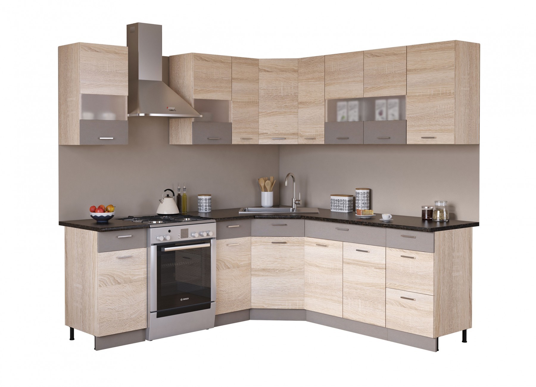 Материал фасада и корпуса: ЛДСП 16 мм. Ширина кухни 260 см.