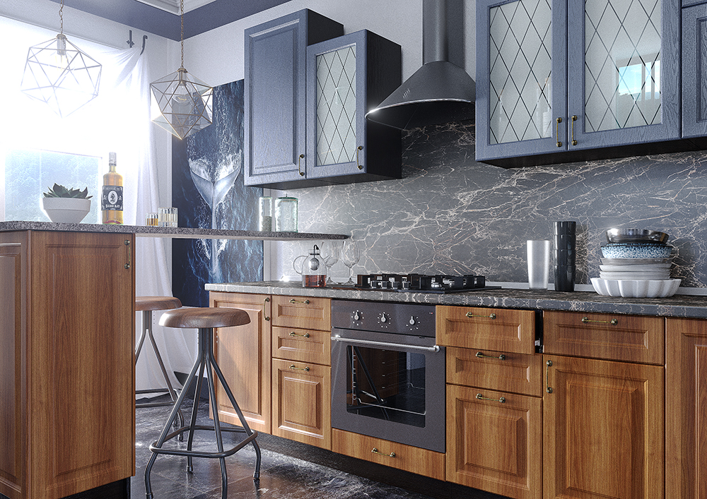 Кухня «Ницца 3.1м» - Дуб чернильный/Орех фактурный