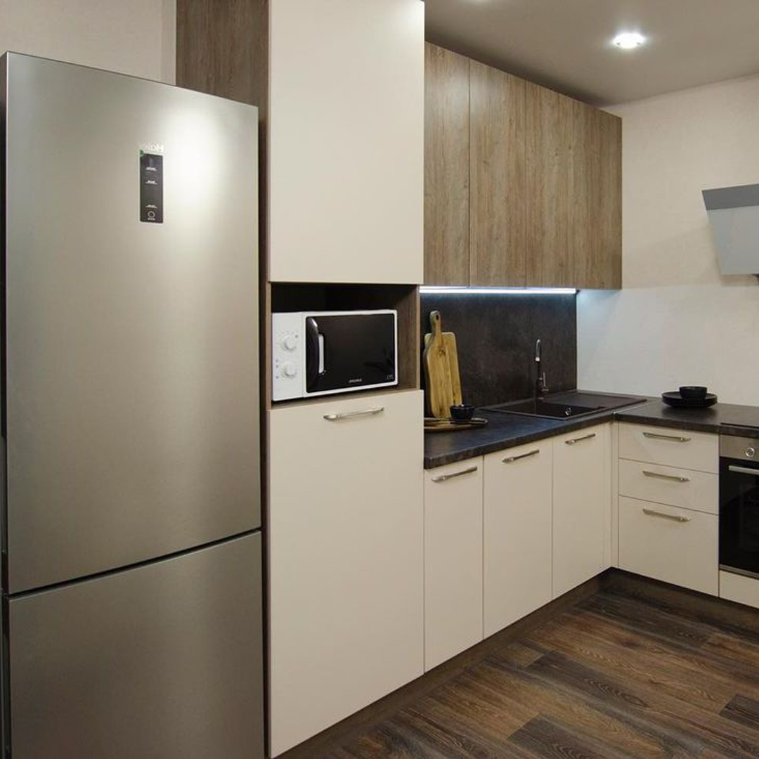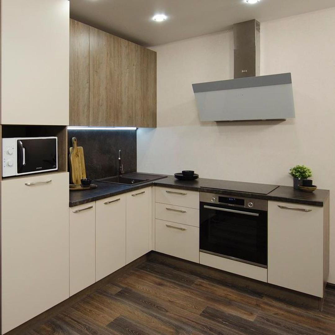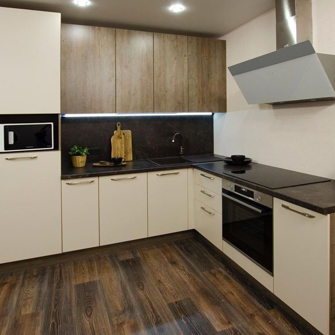 Оригинальная расцветка фасадов в натуральный тонах. Материал – ламинированная ДСП.