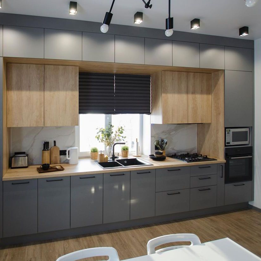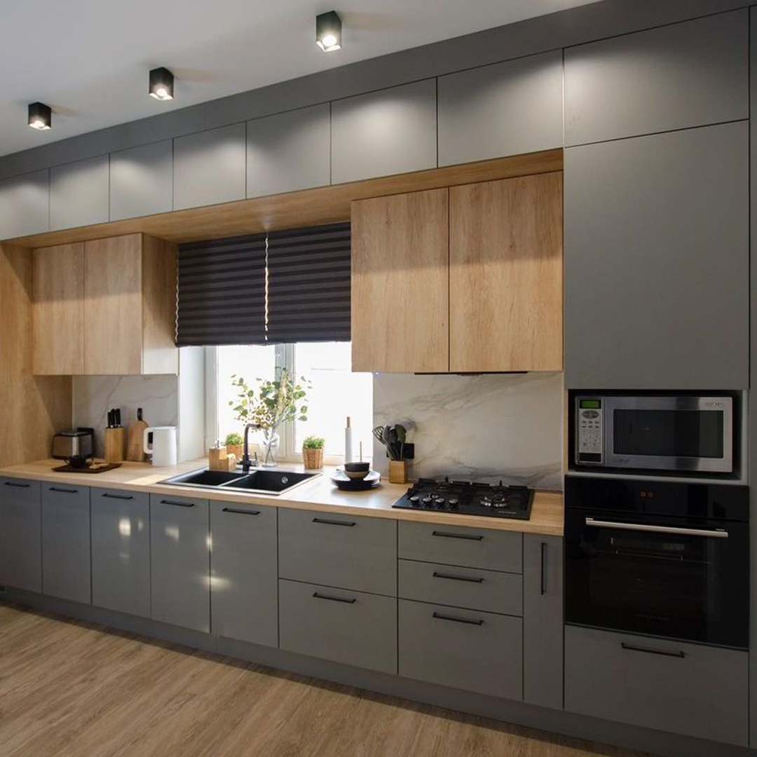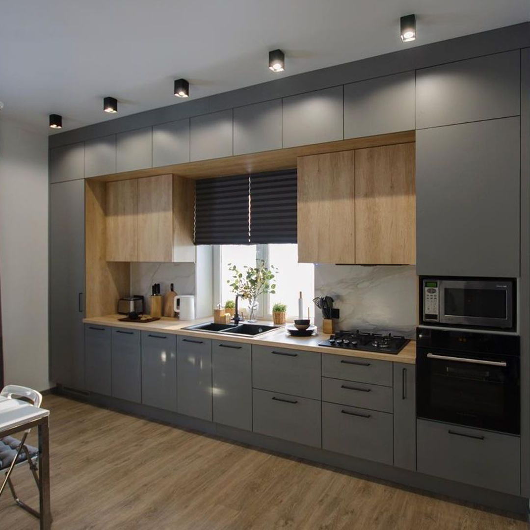 Прямая минималистичная кухня от фабрики ЗОВ. Материал: Крашеный МДФ.