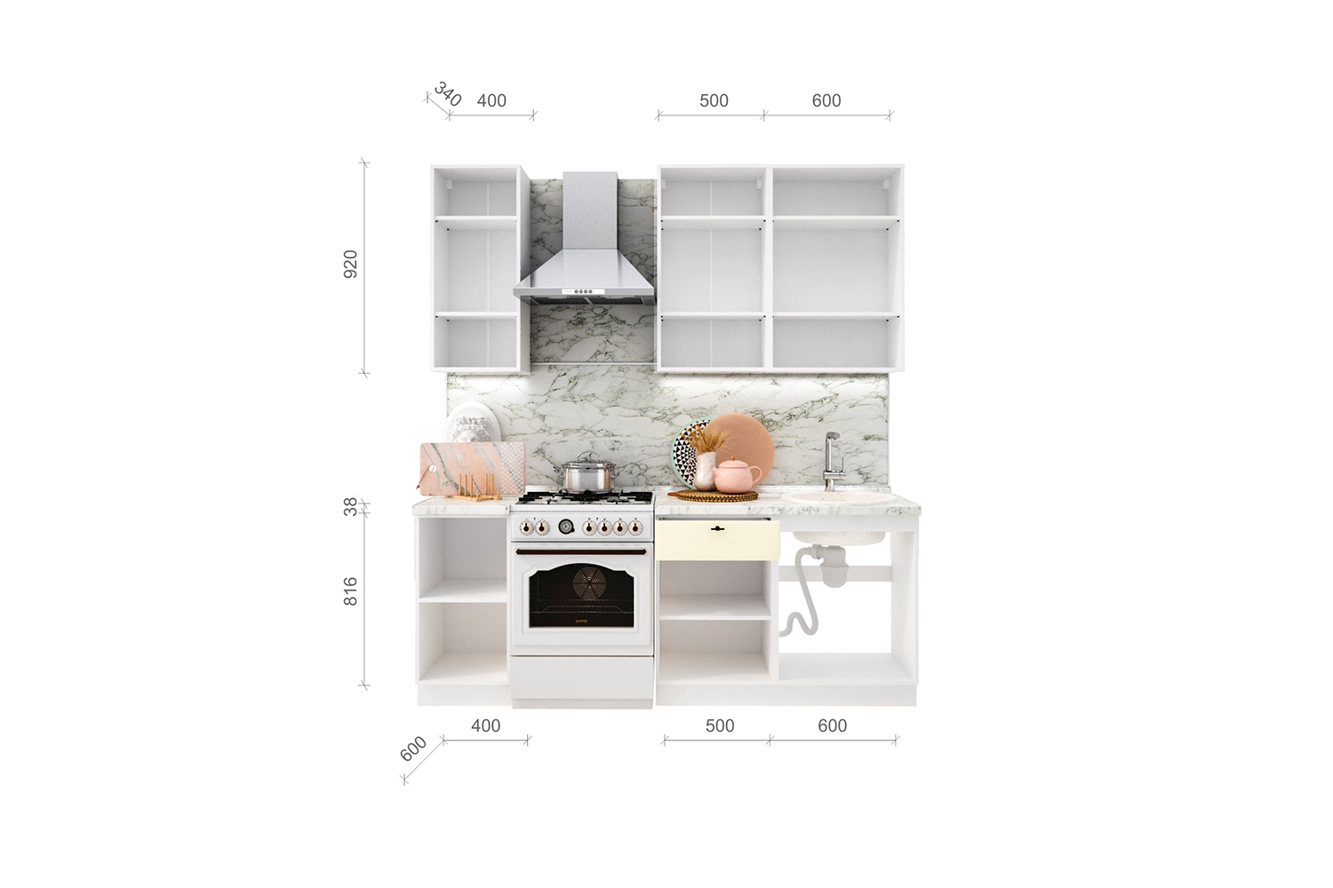 Общая ширина кухни: 1500 мм