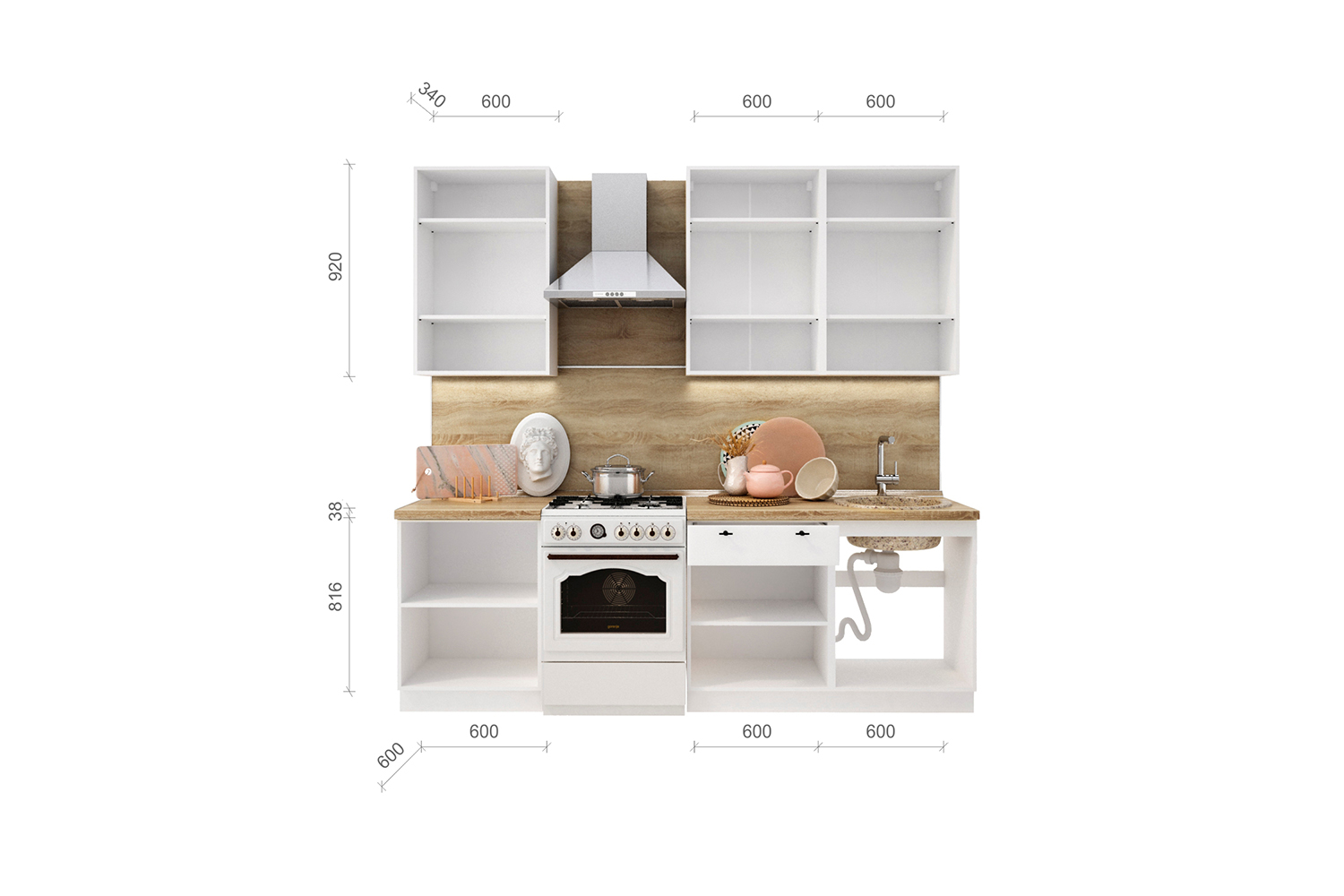 Общая ширина кухни: 1800 мм