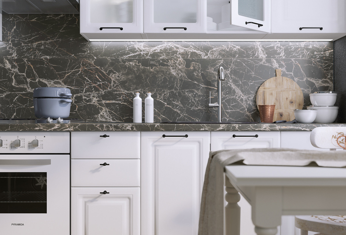 Материал: Пленочный МДФ, Алюминиевый профиль. Столешница: Пластик HPL, 30 мм.