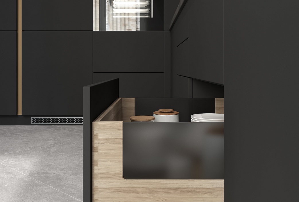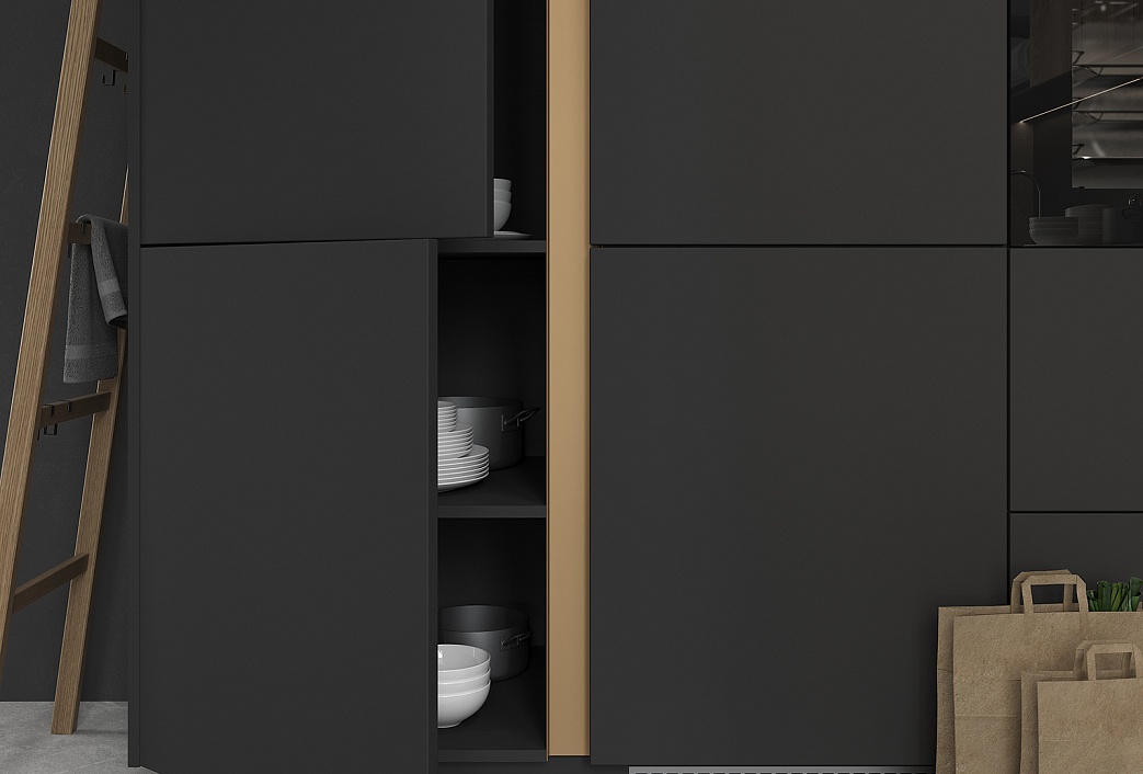 код 114266Черные матовые фасады без ручек. Материал: Крашенный МДФ.