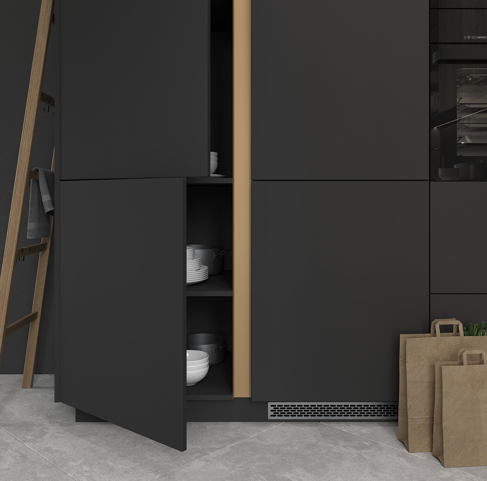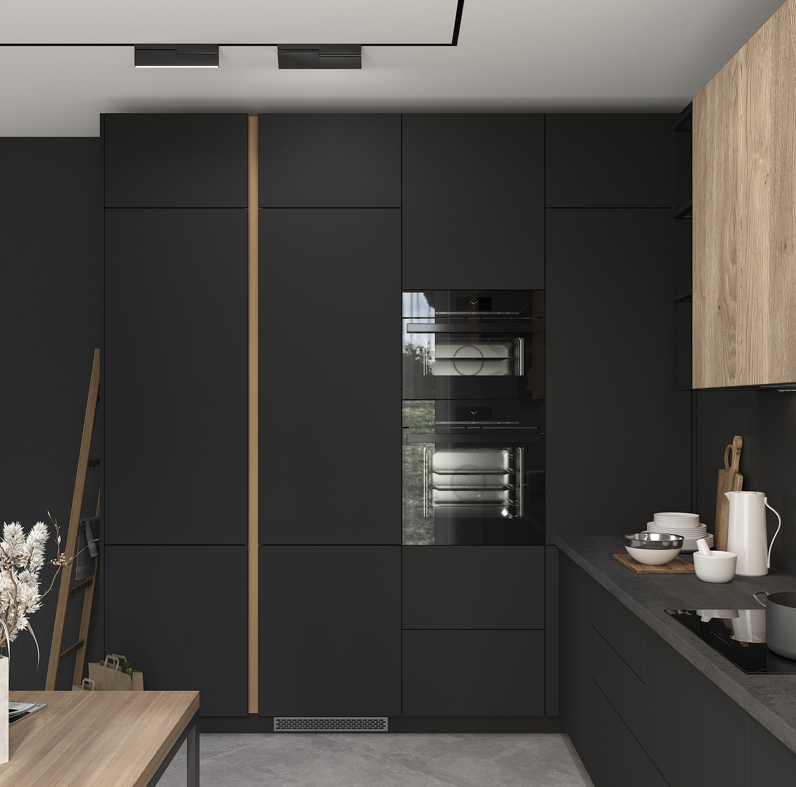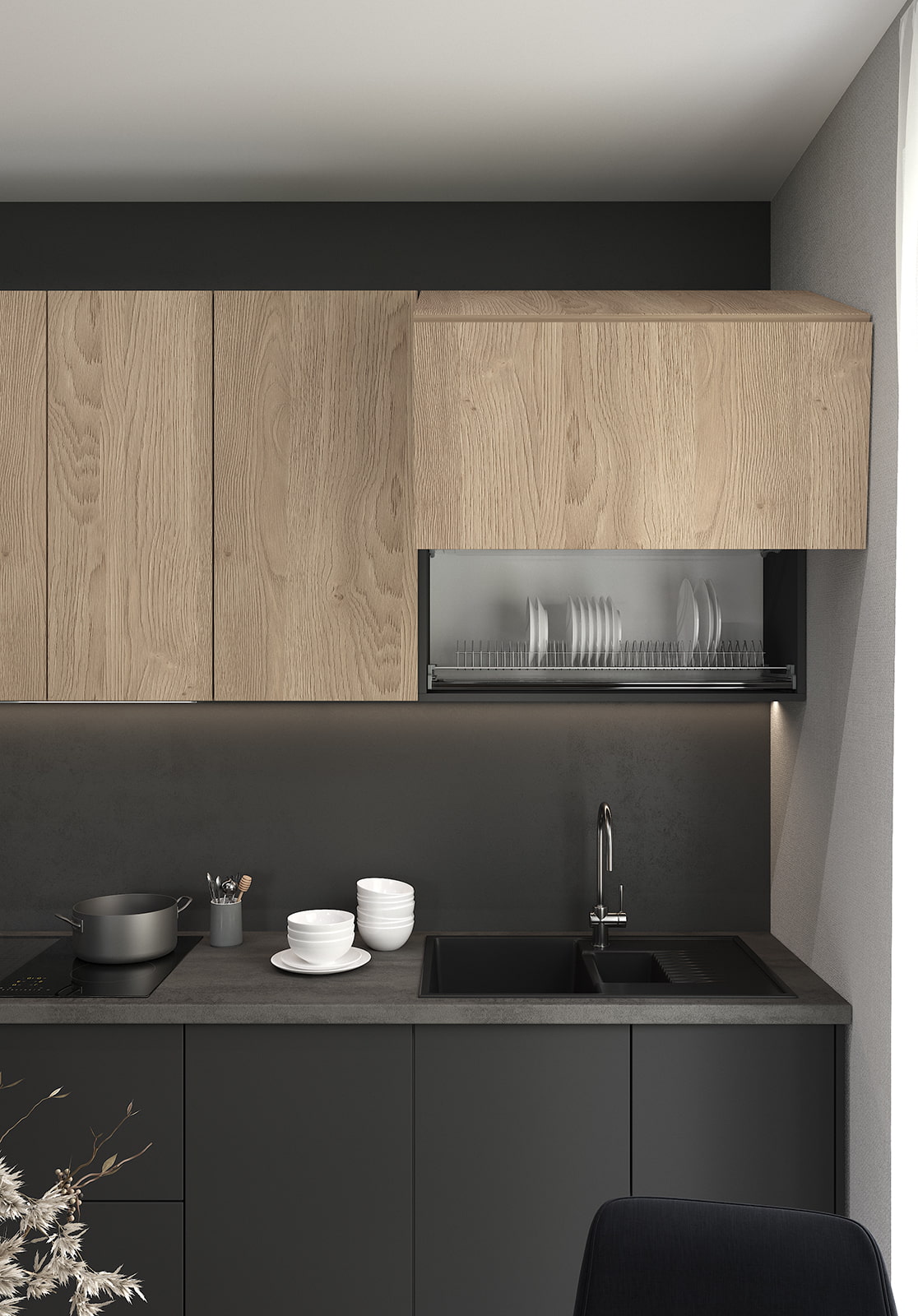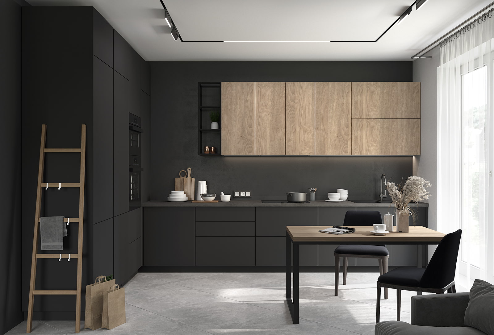 Фасады лмдф, цвет черный супрамат / лдсп тимбер, декор сабиа столешница пластик hpl, 38 мм, цвет хромикс антрацит