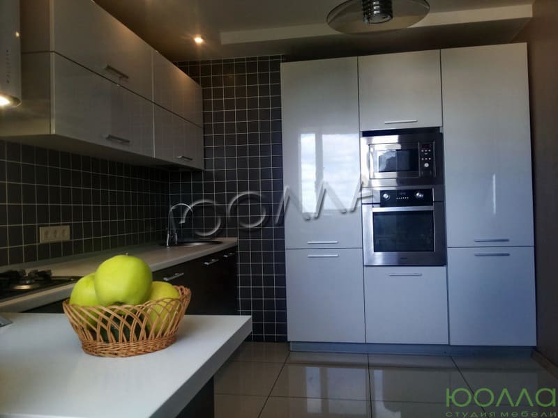 Нижние фасады - ДСП Egger, верхние - МДФ крашеный глянец