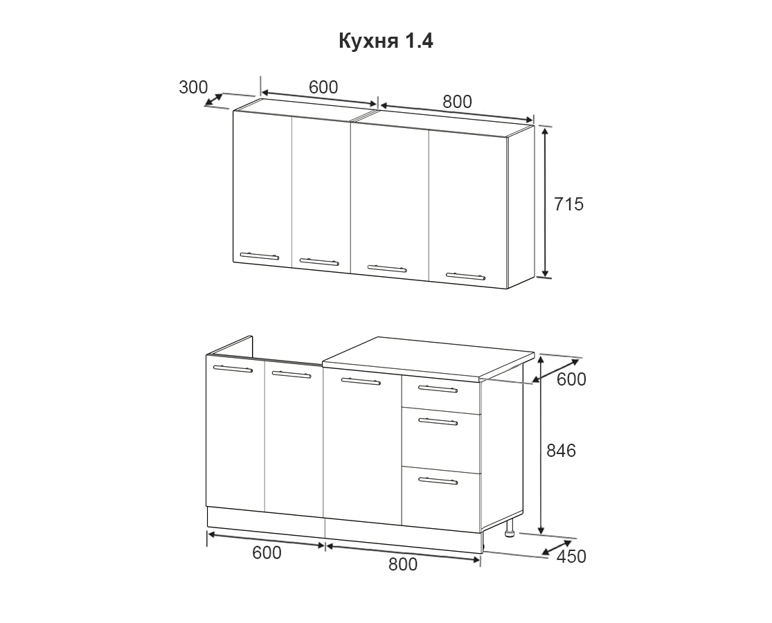 Длина кухни: 1.4: 60+80