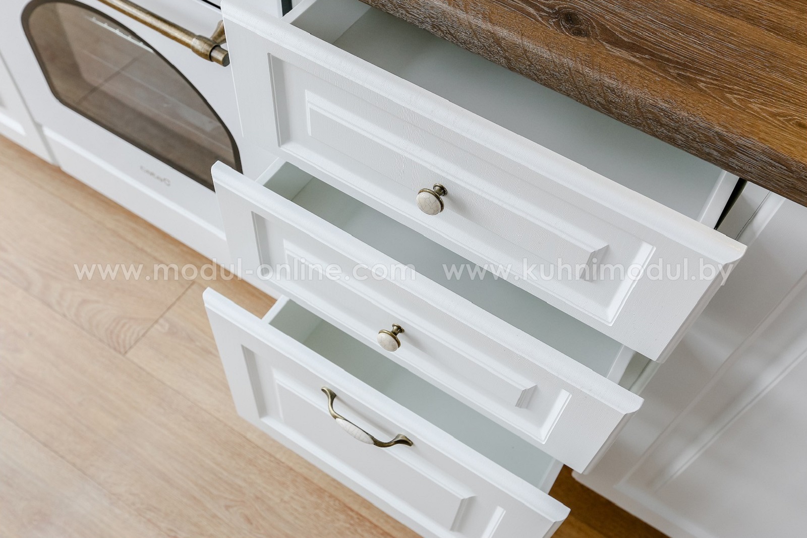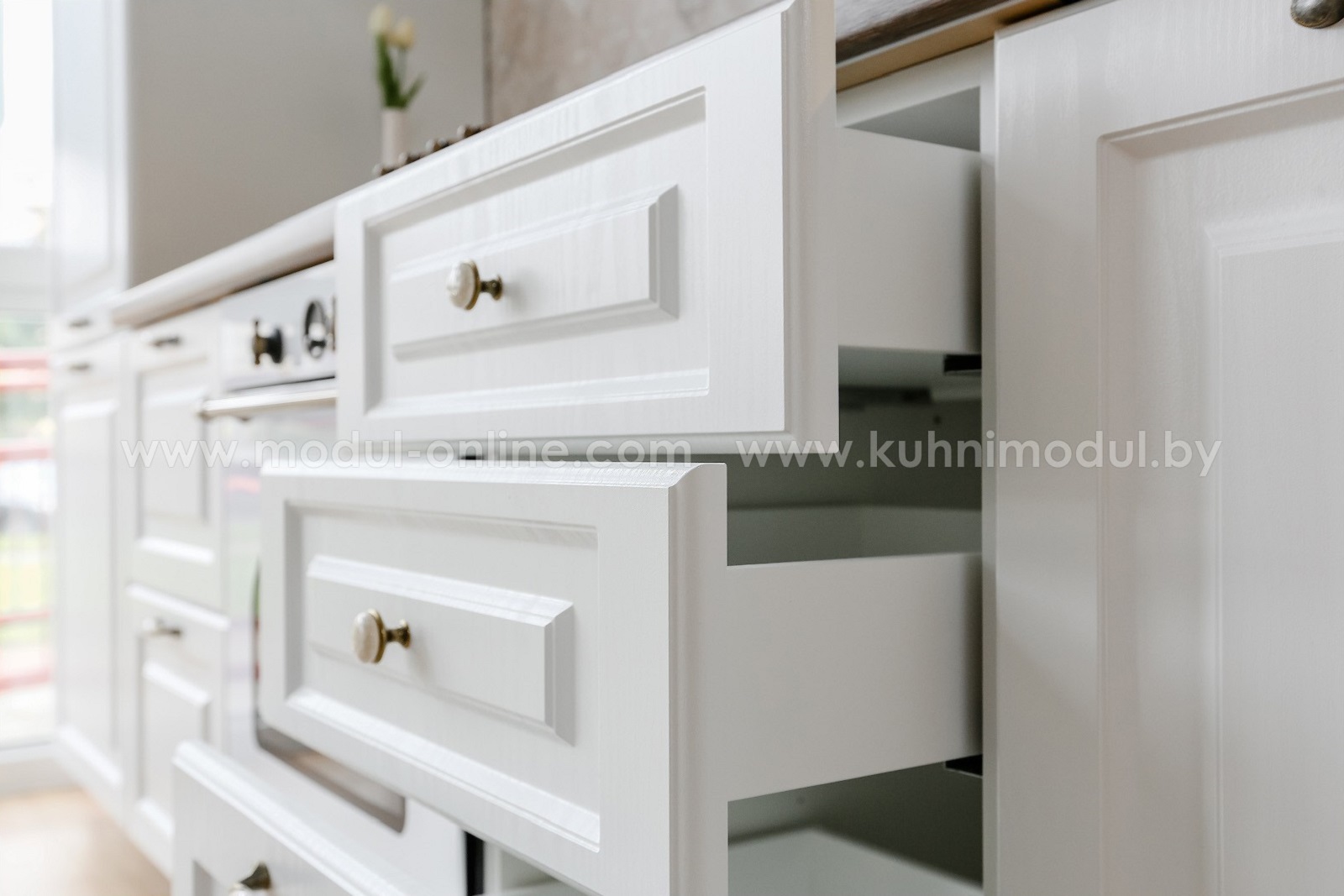- Фурнитура. Выдвижная система Hettich Quadro Silent System бесшумного закрывания (Германия), предусмотрены подъемные механизмы BLUM (Австрия), петли с пневматическим доводчиком BOYARD.