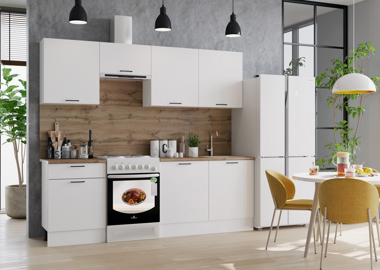 Стильная и функциональная кухню «Паола» размером 2,4 метра. Она идеально подойдет для просторных помещений и позволит создать уютное пространство для приготовления пищи и семейных обедов.