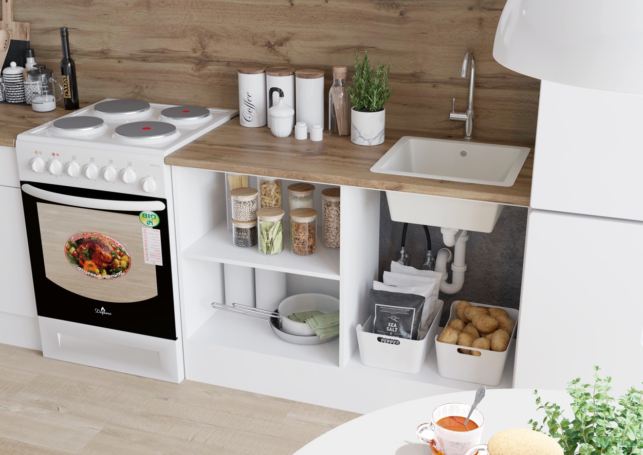 Материал столешницы: постформинг толщиной 28 мм. Этот материал обладает высокой прочностью и устойчивостью к механическим повреждениям, а также легко очищается от загрязнений.
