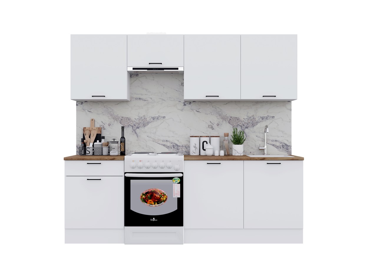 Размеры нижних шкафов (Ш*В*Г) (по столешнице): 1800х870х600 мм (ширина шкафов - 600 + 1200 мм)