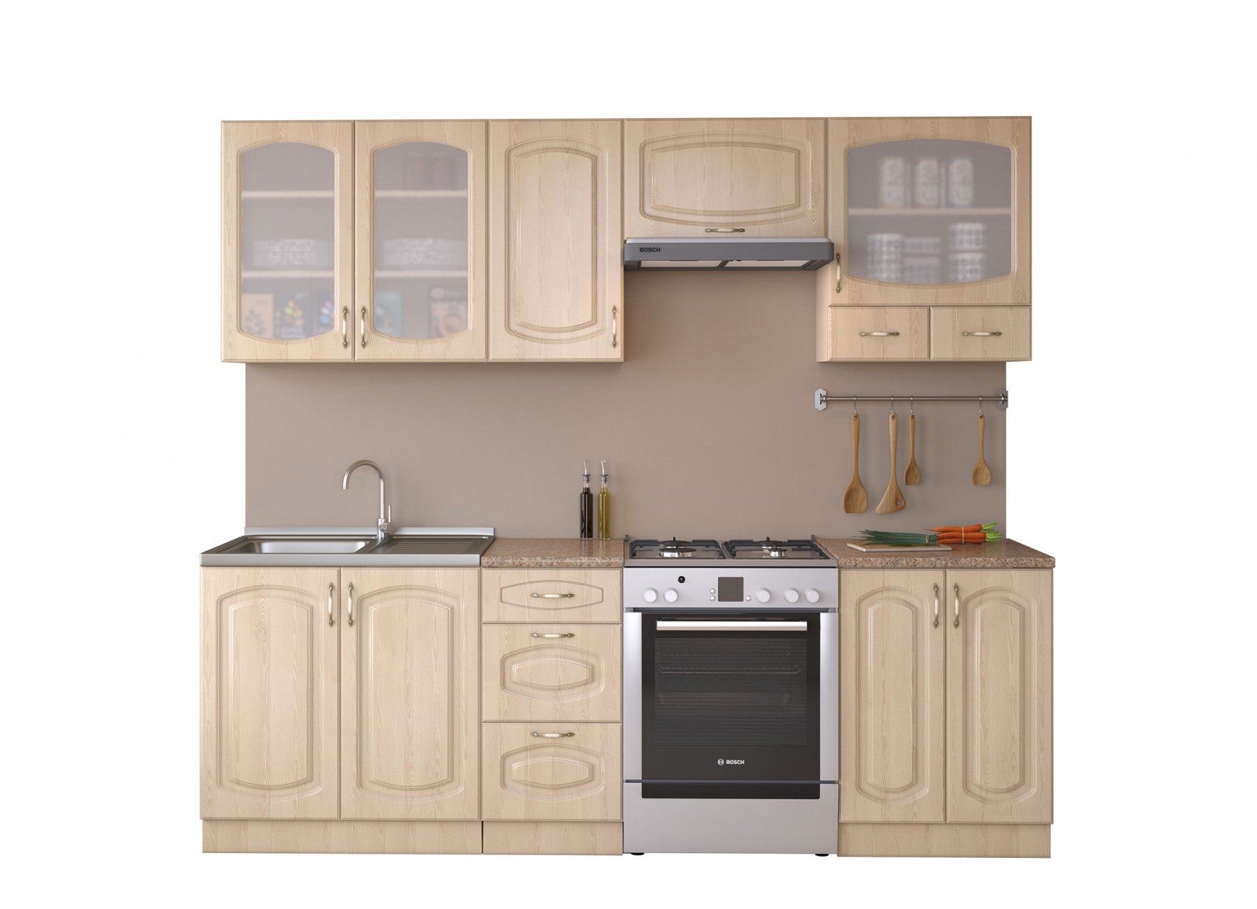 код 104630Ширина модулей: 2400 мм. Практичная кухня в классическом дизайне.