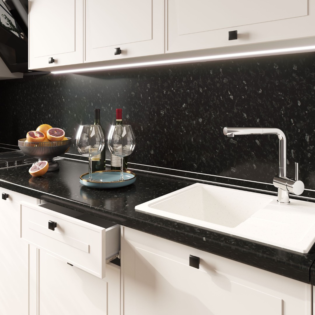 Материалы используемые для изготовления наших кухонь соответствует экологической норме Е1, безопасны для использования, в том числе и для детей. Основными плюсами ЛДСП являются высокая прочность, стойкость к температуре и долгий срок службы;