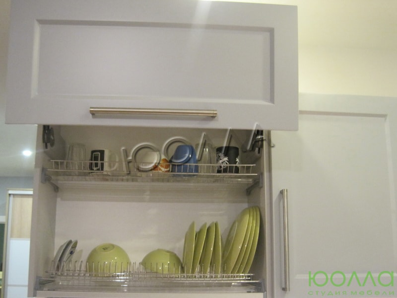 Светлые фрезерованные фасады. Ширина кухни 190 см.