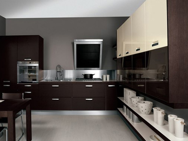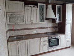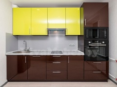 Современная кухня, представленная сочетанием коричневого и бежевого цветов, будет отлично смотреться в просторной комнате. Кухню за счет множества разноплановых модулей можно назвать функциональным гарнитуром высокого качества. В комплекции представлено множество вместительных шкафчиков, а также открытые полки, на которых можно хранить кулинарные книги или расставить предметы декора. Предусмотрена также ниша для встраиваемого духового шкафа. Большой выбор материалов и цветов фасадов. Конечная цена рассчитывается исходя из материалов и в расчете на метр погонный.