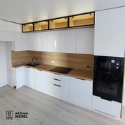 Лаконичная островная кухня в стиле модерн с фасадами из крашенного МДФ.