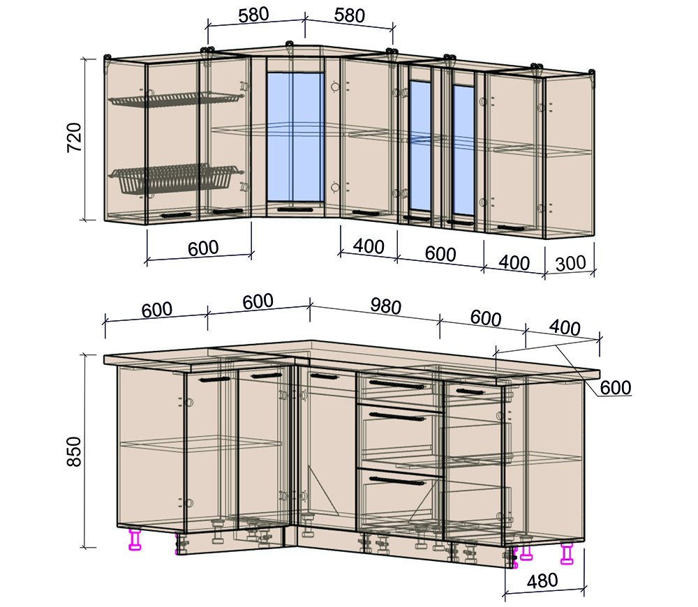 Материал корпуса и фасадов – ЛДСП. Ширина кухни 140 см.