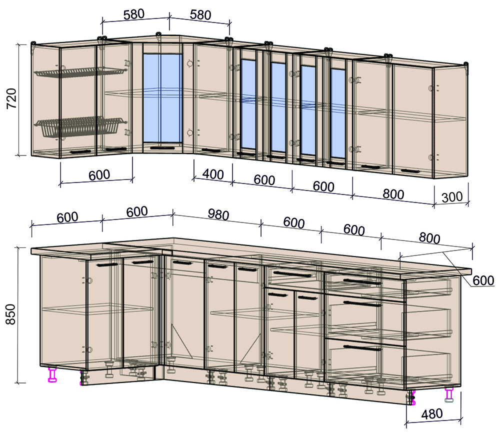 код 139719Ширина кухни (мм): 3000. Материал: ЛДСП/МДФ крашенный, пластик (покрытие).