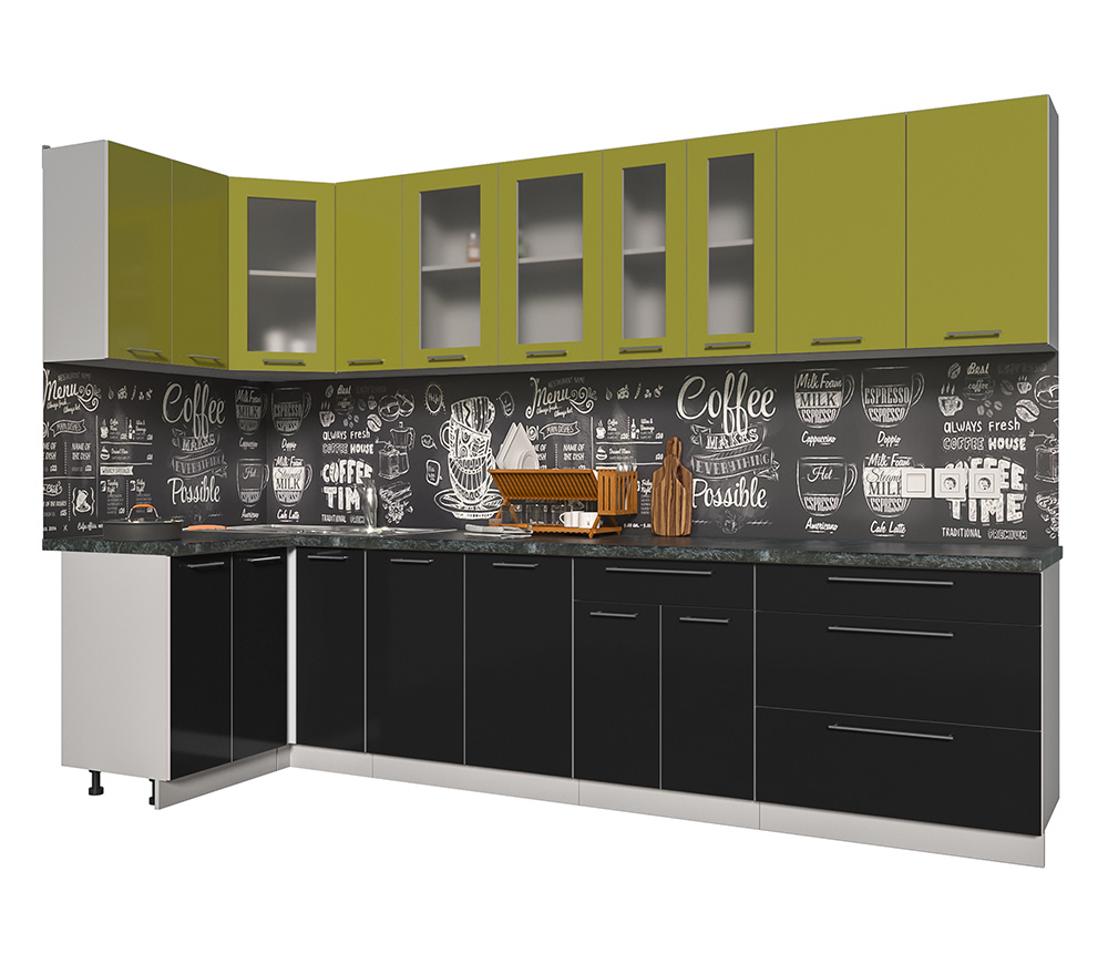 Материал корпуса и фасадов – ЛДСП. Ширина кухни 220 см.