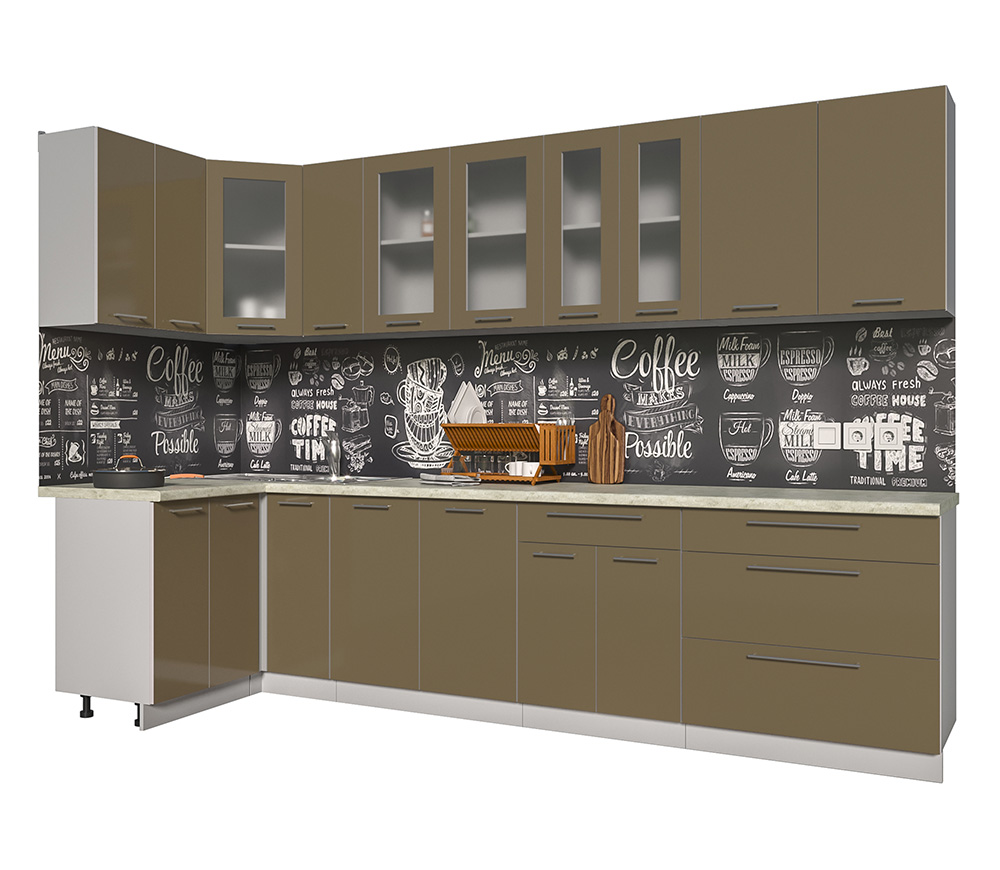 код 139720Ширина кухни (мм): 3100. Материал: ЛДСП/МДФ крашенный, пластик (покрытие).