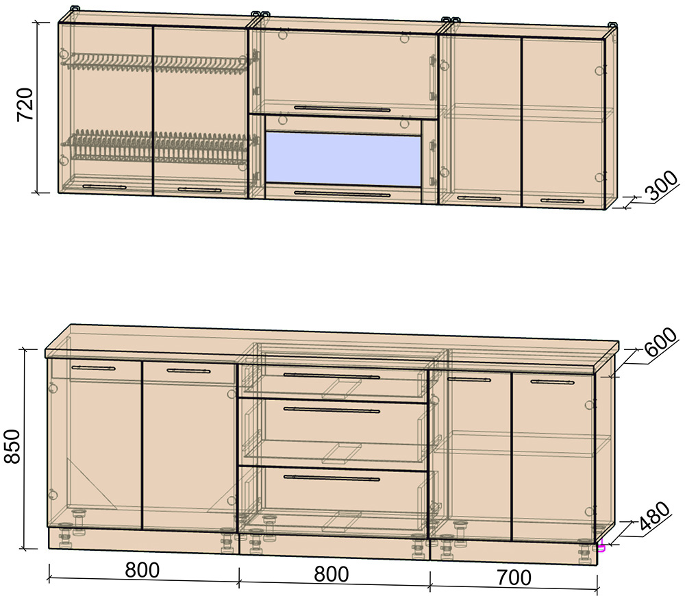 Материал фасада и корпуса: ЛДСП 16 мм. Ширина кухни 130 см.