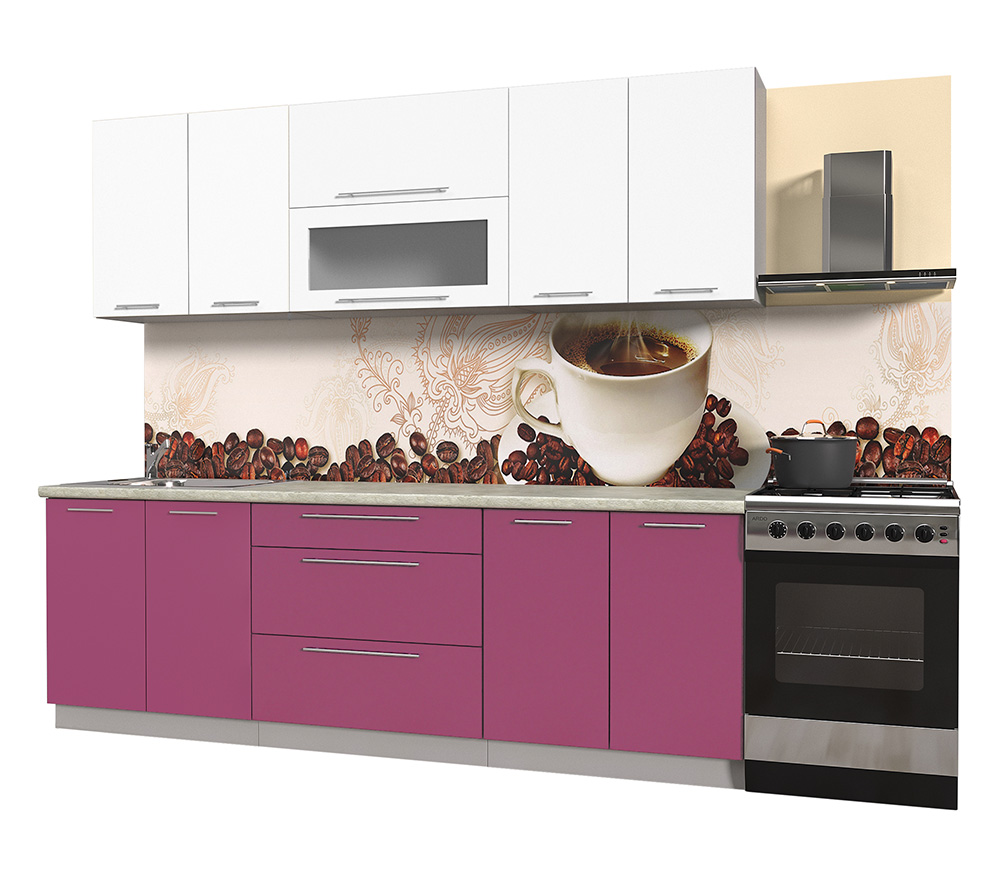 код 139658Ширина кухни (мм): 2400. Материал: ЛДСП/МДФ крашенный, пластик (покрытие).