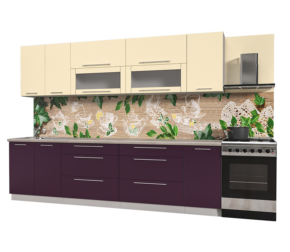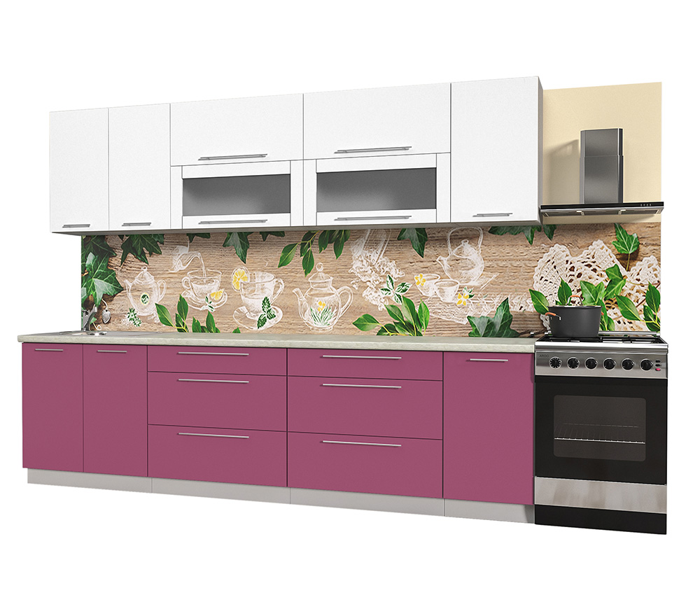 код 139673Ширина кухни (мм): 2900. Материал: ЛДСП/МДФ крашенный, пластик (покрытие).