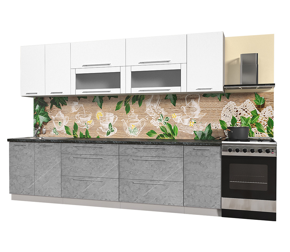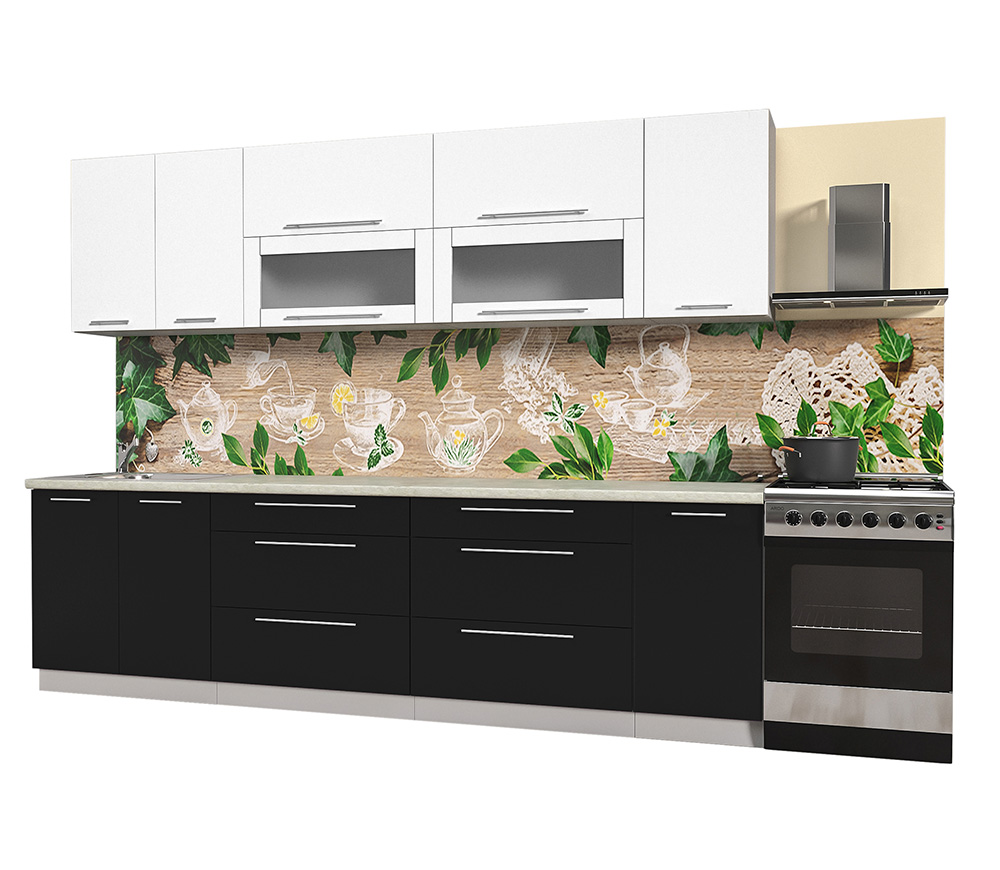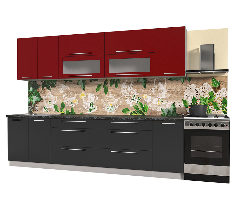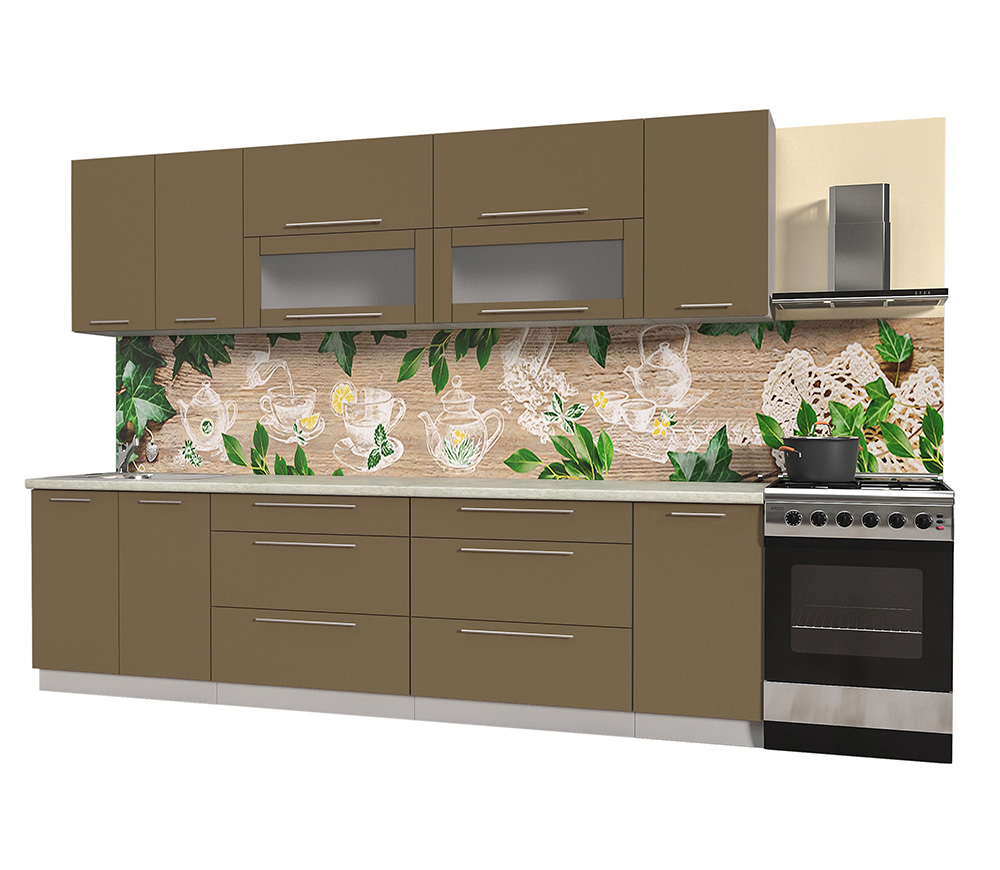 Материал фасада и корпуса: ЛДСП 16 мм. Ширина кухни 250 см.