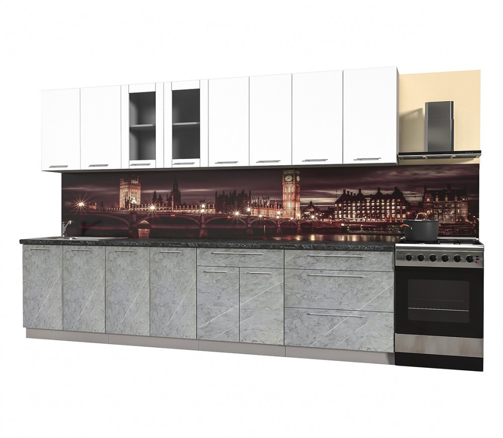 Кухня «Глетчер 2.4м» - Вариант 5 - Айленд силк