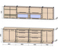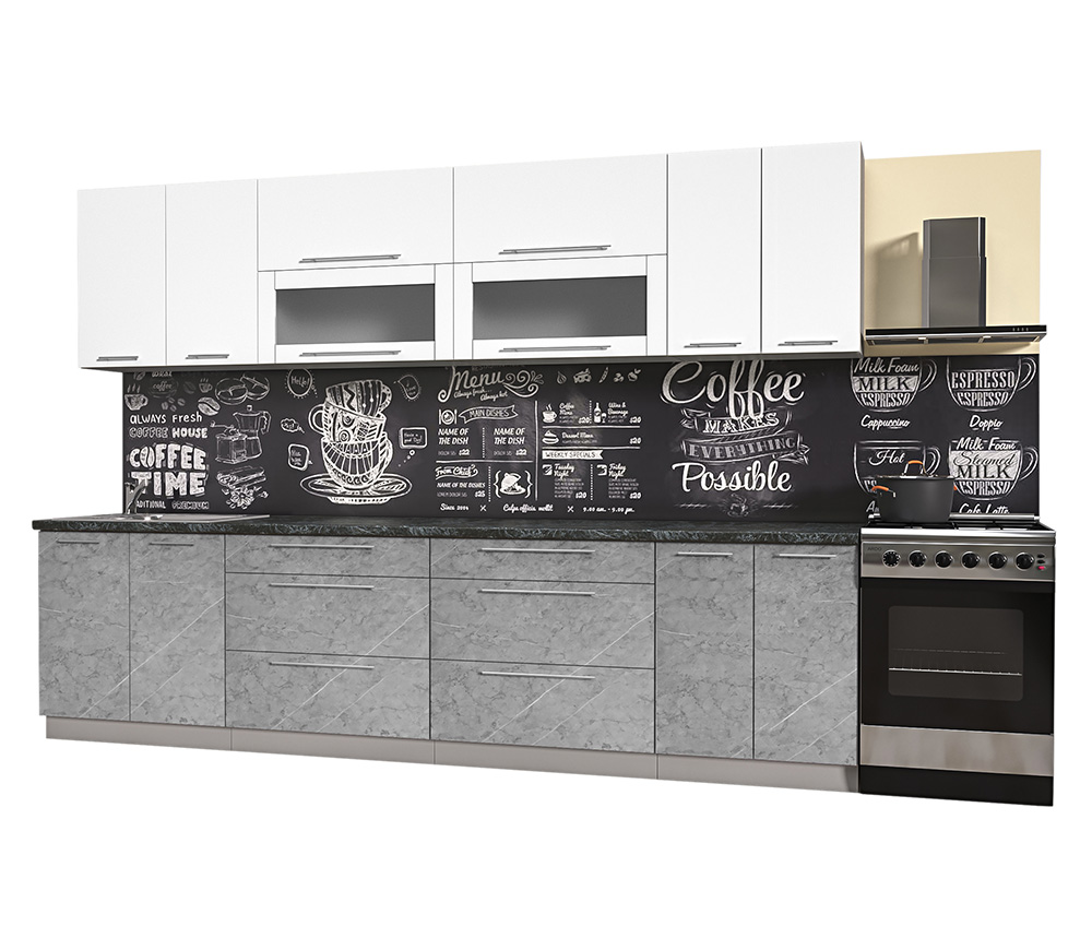 Готовый гарнитур с комбинированными фасадами из ЛДСП. Ширина кухни 160 см.