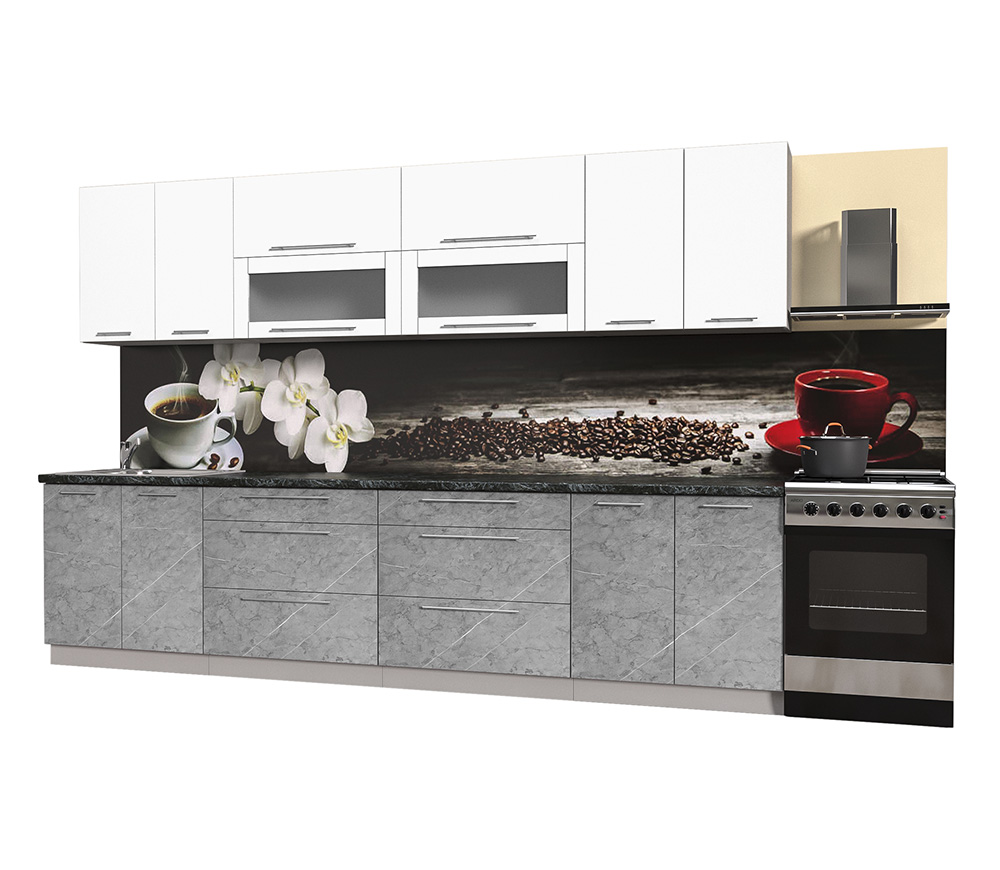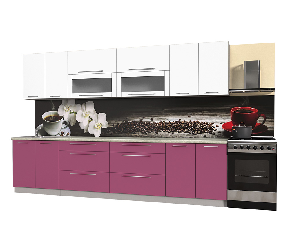 код 139679Ширина кухни (мм): 3200. Материал: ЛДСП/МДФ крашенный, пластик (покрытие).
