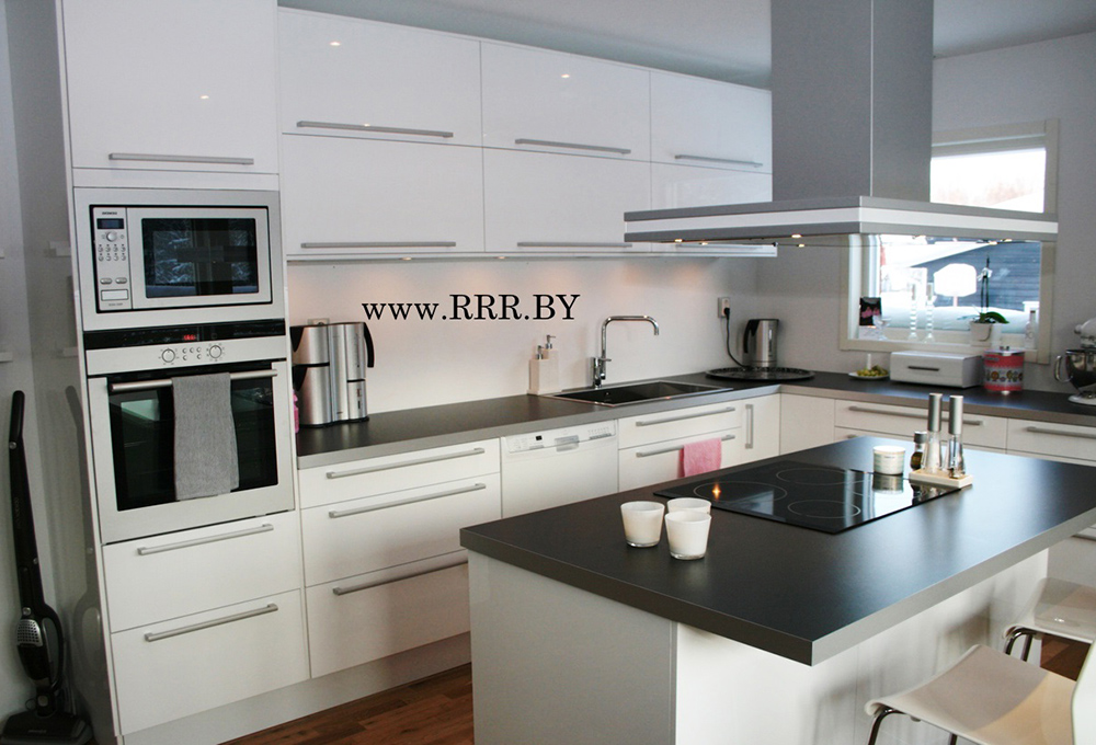 Гарнитур с белым корпусом и серыми фасадами. Пр-во: Беларусь.