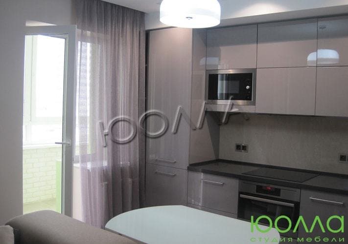 Кухня «Платина» имеет такое название из-за похожего на драгоценный металл цвета фасадов. Глянцевый блеск и современный дизайн гарнитура приятно дополняют друг друга. Для того, чтобы избавиться в дизайне от внешних ручек, используются скрытые крепления и фурнитура по немецкой технологии «Фолдинг».