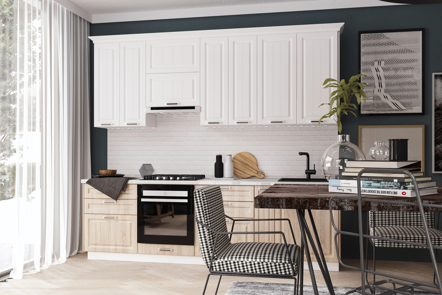 Кухня «Прага 2.6м» - Белое дерево/Дуб сонома