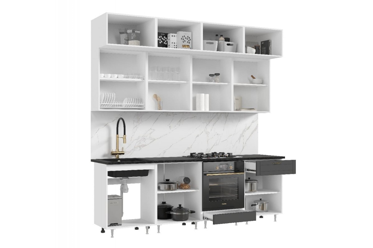 Кухня «Престиж 2.4 м ВТ» (белый - графит софт)