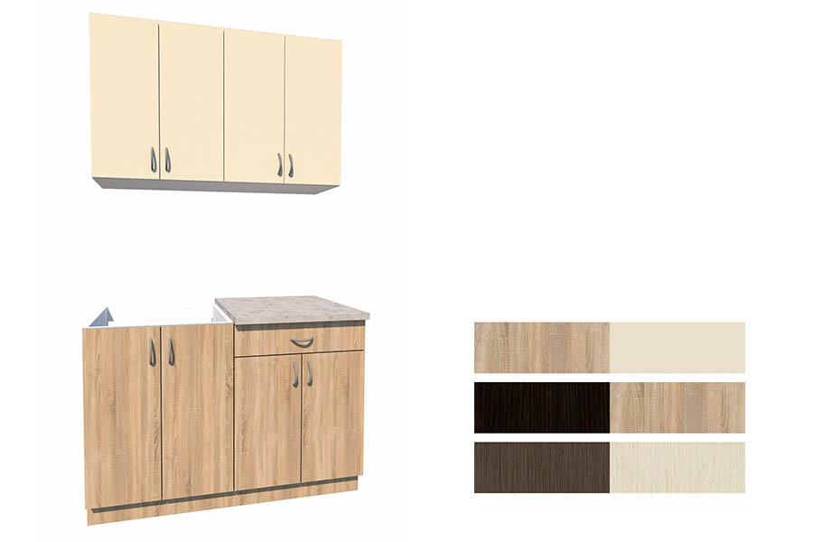 На главном фото изображена кухня в цвете «дуб сонома - ваниль», модель также доступна в расцветках «венге - дуб сонома», «файнлайн мокка - файнлайн крем».