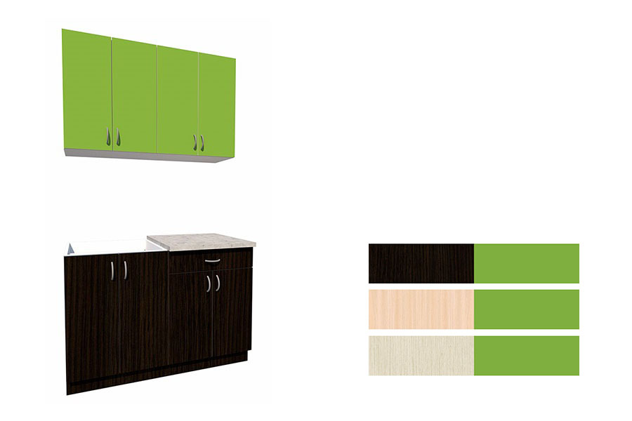 - Цвет фасадов: венге/зеленая мамба.