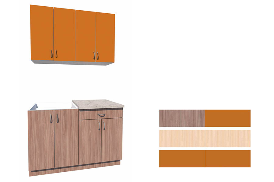 - Цвет фасадов: ясень шимо темный/оранжевый.