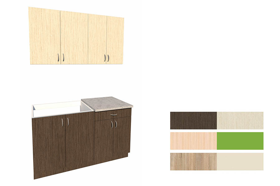 Материал: Пленочный МДФ, Шпон. Столешница: Компакт-плита, 12 мм.