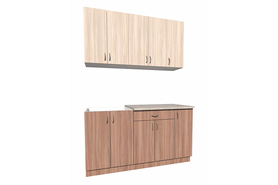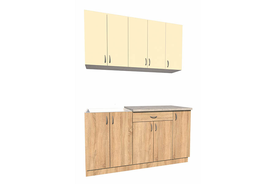 Материал корпуса и фасадов – ЛДСП. Ширина кухни 150 см.