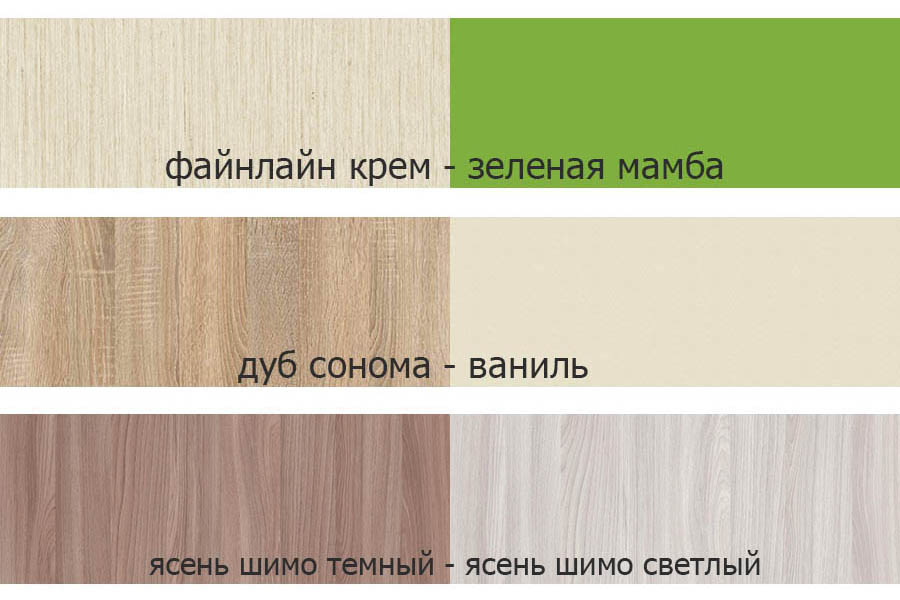 - Цвет фасадов: файнлайн крем/зеленая мамба.