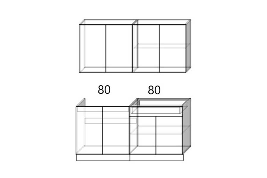 - Глубина нижних шкафов: 600 мм (по корпусу – 480 мм).