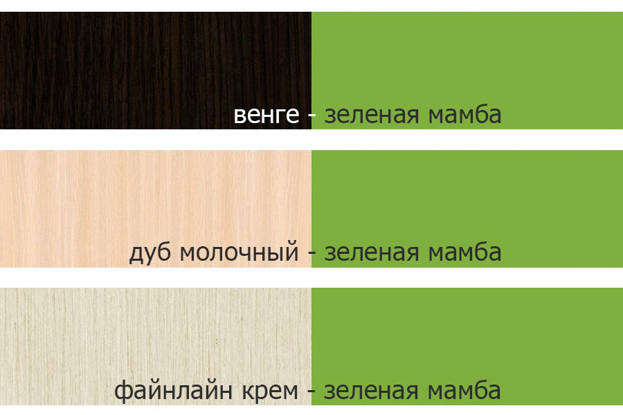 На главном фото изображена кухня в цвете «венге - зеленая мамба», модель также доступна в расцветках «дуб молочный - зеленая мамба», «файнлайн крем - зеленая мамба».