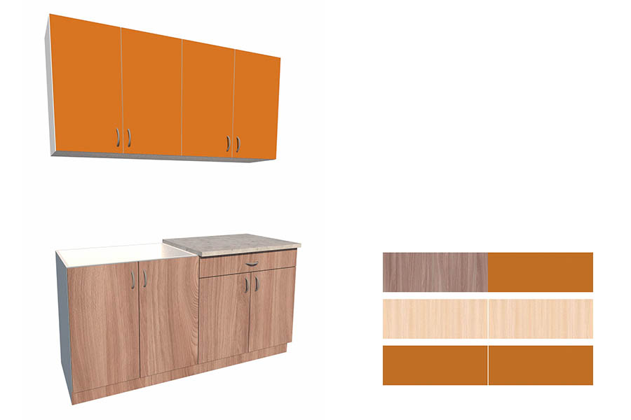 - Цвет фасадов: ясень шимо темный/оранжевый.